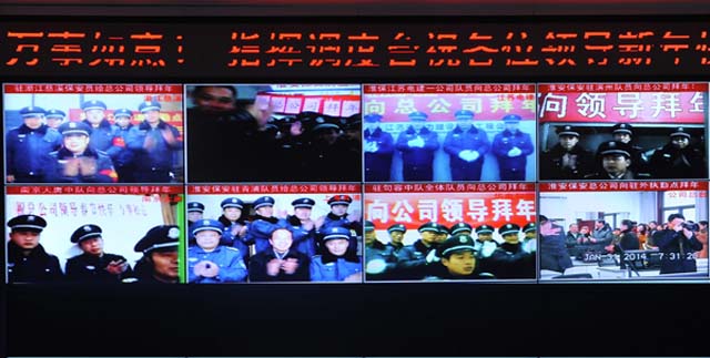2014年元月31日大年初一早晨7時28分,公司總經理婁伯翱、副總經理王克、徐文剛以及公司黨總支委員、公司各部負責人一起慰問了執行任務的武裝押運員,婁伯翱總經理代表黨總支向大家拜年并致以節日的問候和祝福。隨后,公司領導來到公司指揮調度中心,通過互聯網視頻連線,代表總公司黨總支慰問了駐外分公司駐浙江慈溪、上海青清、山東濱州、南京大唐、鎮江等地駐外保安隊伍,向他們致以新春的祝福!