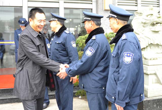 然后,在保安人防管理中心總監王錦春陪同下,婁伯翱總經理慰問了駐市市財政局、職業技術學校、順泰包裝等人防執勤點以及物管公司、銀盾駕校、犬防基地;副總經理王克和徐文剛分別驅車慰問駐山東、南京山東等駐外保安員。當天下午,總經理婁伯翱將赴浙江慰問駐外保安員。