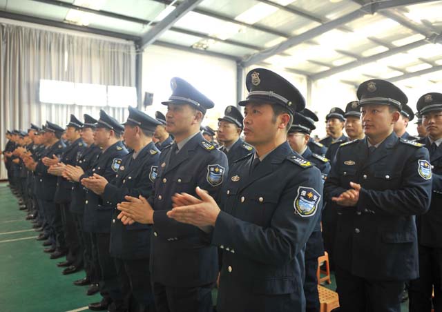 會議內容和安排一切從簡,有四項議程,一是播放年度總結PPT文件,二是宣讀表彰人員名單,三是部門遞交責任狀,最后總經理婁伯翱講話。押運大隊市區押運員和駐各縣隊員代表;機關各部門人員以及各分公司員工代表近700人參加了會議。