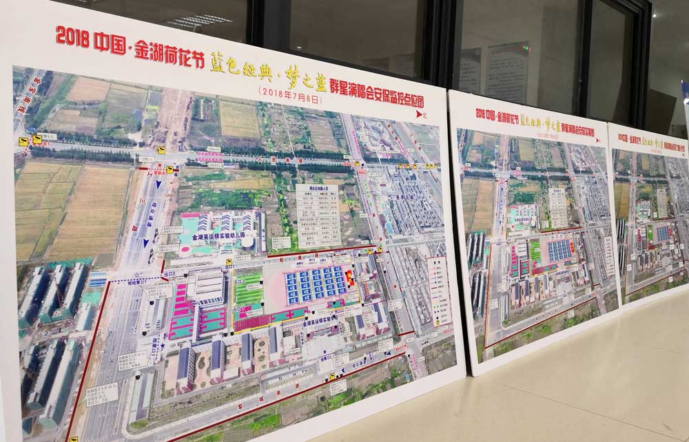 在當天晚會演出現場,所有參戰人員充分發揮歷年荷花節安保經驗,淮安保安人不斷進取,不斷提升安保品質。在人防方面,合理調配人員,精心組織所有參加執勤隊員學習安保方案,現場拉練,強調一線執勤隊員的責任意識和主動工作意識,用行動來踐行安全服務責任承擔者的擔當。另外在活動周圍加裝了高清視頻監控設備,在活動現場搭建高清調度指揮中心,實現實時現場指揮。在無人機巡航、警犬搜爆、綜合后勤保障方面也實現質的提升。