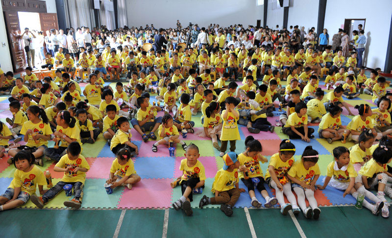 6月3日下午,總公司院內,400余名小朋友排成2012字樣并放飛氣球,共同歡度剛剛過去的六一兒童節。