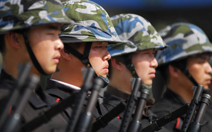 5月3日,武裝押運員在進行實戰(zhàn)演練。