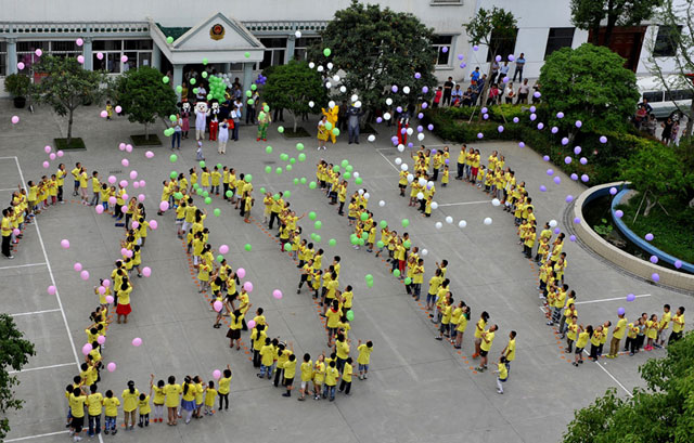6月3日下午,總公司院內,400余名小朋友排成2012字樣并放飛氣球,共同歡度剛剛過去的六一兒童節(jié)。