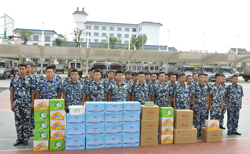 7月21日下午,為表達對冒著酷暑奮戰在安保一線的保安隊伍的敬意,淮安市總工會和淮安市公安局領導一行帶著飲料、洗滌用品和毛巾等來到總公司,在公司總經理婁伯翱的陪同下,親切慰問了正在訓練中的押運新隊員,將防暑用品送到他們的手中。