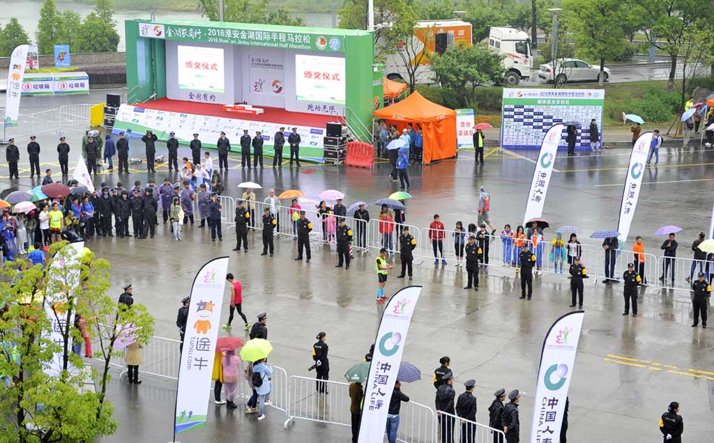 由中國(guó)田徑協(xié)會(huì)、江蘇省體育局、淮安市人民政府聯(lián)合主辦,金湖縣人民政府、淮安市體育局、江蘇省體育產(chǎn)業(yè)集團(tuán)承辦的“2016淮安金湖國(guó)際半程馬拉松”比賽,于2016年5月15日上午8:30分在金湖縣荷花廣場(chǎng)鳴槍開賽,來自世界各地及我國(guó)長(zhǎng)跑愛好者10000余名運(yùn)動(dòng)員參加了比賽。淮安市保安服務(wù)總公司派出700余名安保人員冒雨執(zhí)勤,提升了保安隊(duì)伍在復(fù)雜天氣條件下的快速反應(yīng)和安保執(zhí)勤的能力。
