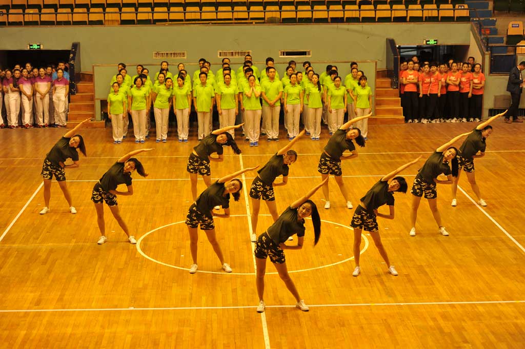 在此次活動中,所有人員充分發揮了不怕苦、不怕累的精神,積極參與排練,刻苦訓練,最終獲得了殊榮。由于時間緊,任務重,接到通知時已臨近比賽,從各部門人員抽調到排練只用了一個星期。所有人員都是初次接觸第九套廣播操,所有動作都是第一次學習。人多動作復雜難以整齊劃一。為了達到整齊劃一的標準動作,帶隊崔主任帶領大家一遍又一遍的練習。從早晨8點一直到晚8點,期間,所有人員克服了種種困難,訓練場流下了淚水與汗水。
