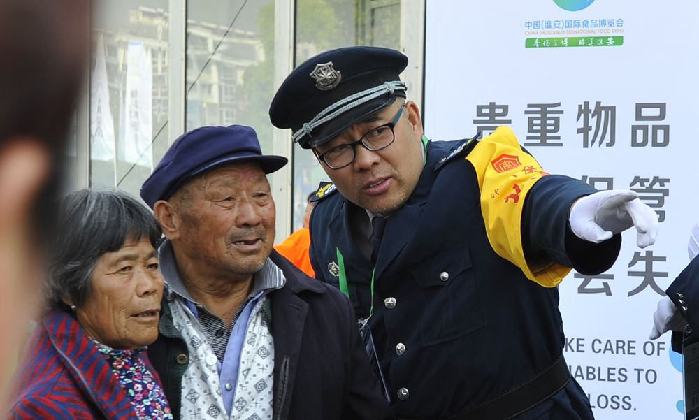 保安員熱心幫助觀展群眾