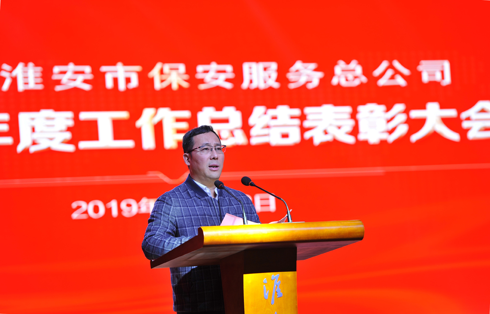 會議觀看了《淮安保安2018年度工作總結報告》視頻短片,對2018年度工作進行了總結,對總公司2019年度工作進行了部署;人防管理中心、押運管理中心、駐外分公司等10個部門向婁伯翱總經理遞交了《2019年度工作目標責任狀》;并對一年來工作突出的先進集體和先進個人進行了表彰。