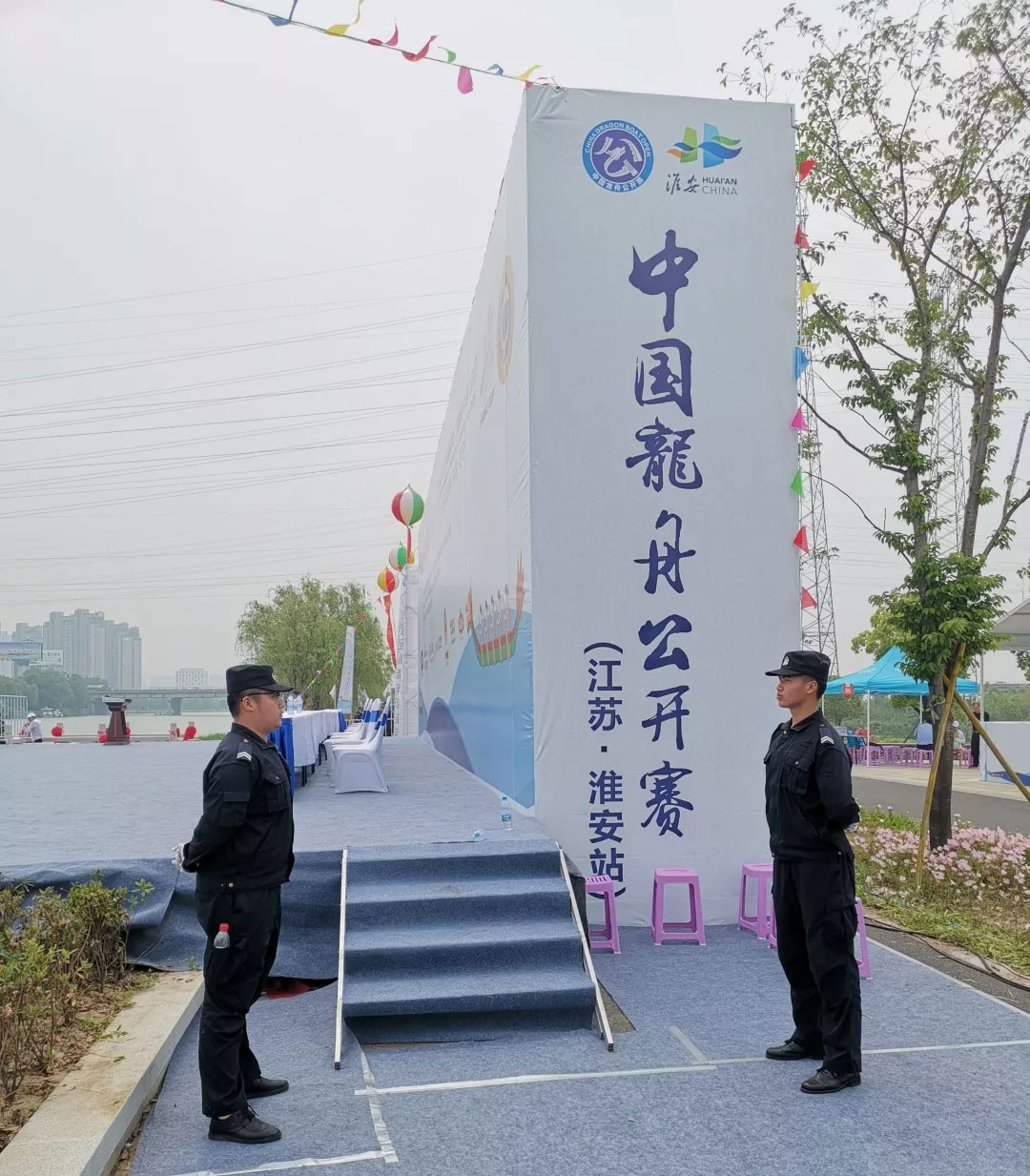 5月13至15日,第二屆全國青年運動會龍舟項目預賽也將在江蘇淮安里運河風光帶龍首灣河段開賽,全國14支隊伍441人參加,角逐山西太原的第二屆全國青年運動會龍舟賽決賽資格。淮安保安執勤隊員們也將在這次賽事中堅守崗位、盡職履責,抗擊疲勞、化解風險,全程以飽滿的精神面貌和較強的隊伍素質,獲得了現場群眾的一致認可,圓滿完成了龍舟賽活動的安全保衛工作任務。