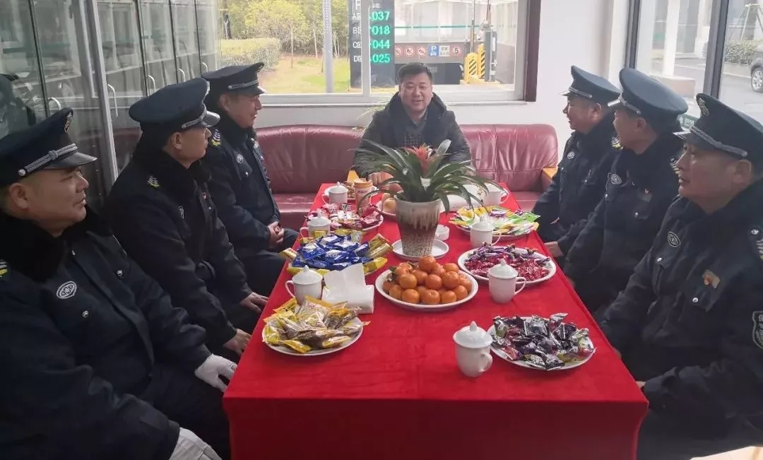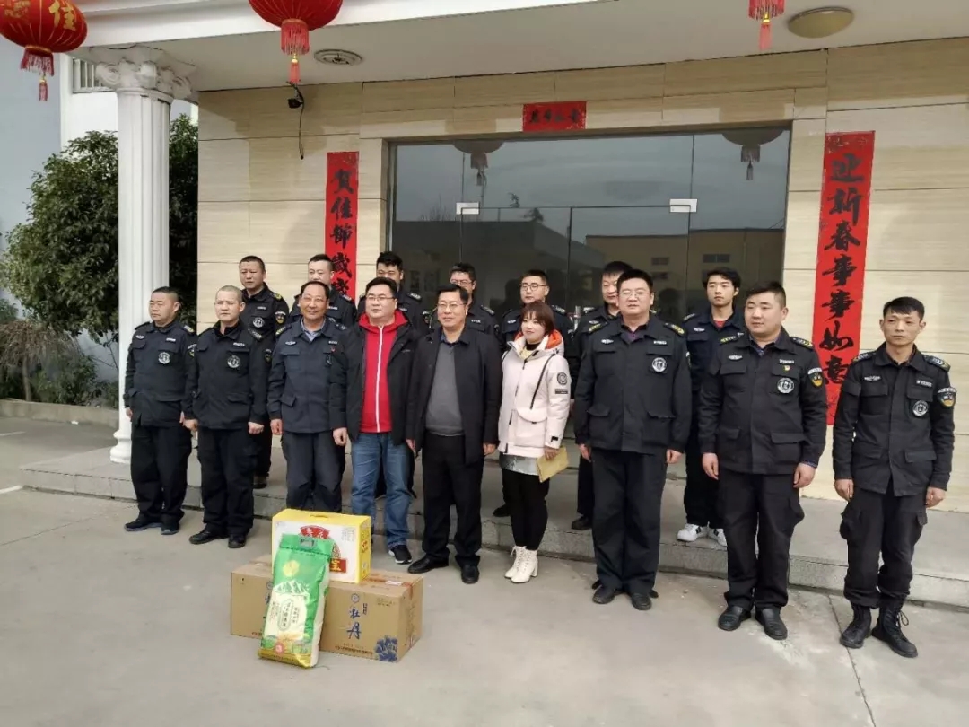 隨即,總經理趙愛忠、副總經理王錦春一行親切慰問了駐淮安市政務中心、金融中心、順泰包裝有限公司、銀盾供應鏈物流監管倉庫等執勤點隊員,給他們帶來節日的祝福,鼓舞了隊伍的士氣!
