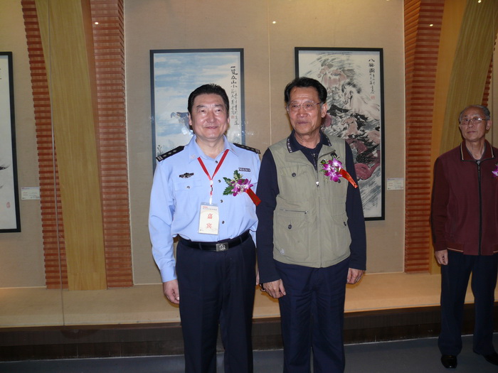 (上圖)公司肖樹勝總經理與中國人民解放軍海軍原副司令員趙興發中將在展廳合影