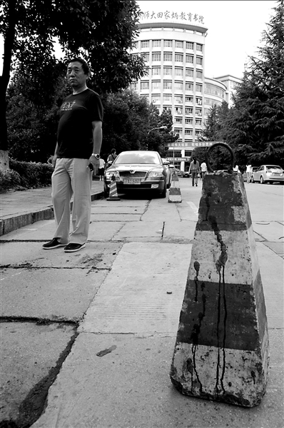 正在附近吃午飯的保安倪兵、韓一民和孫凱放下碗筷,從一條近路沖出圍追堵截徐適。在離校門口約200米處,4名保安堵住了徐適。兇案現場的左前方50米處是學校的食堂,正前方是主教學樓。“事發時正值學生用餐高峰期,幾千名學生進進出出。如果兇手過去了,后果不堪設想!”鐘琪說。