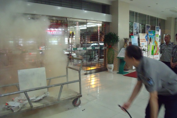 (上圖)培訓會結束后,還進行了實戰操作演練。通過這次專項教育活動,切實加強了農行保安員隊伍建設,保安員掌握了應急突發事件的處置方法,提高了保安員防范火災的安全意識和滅火、逃生、自救的能力,為銀行的正常經營和消防安全保駕護航。