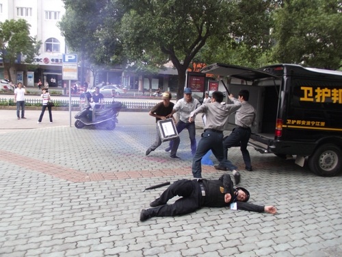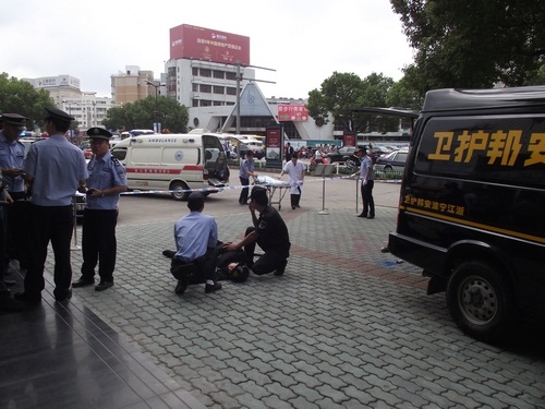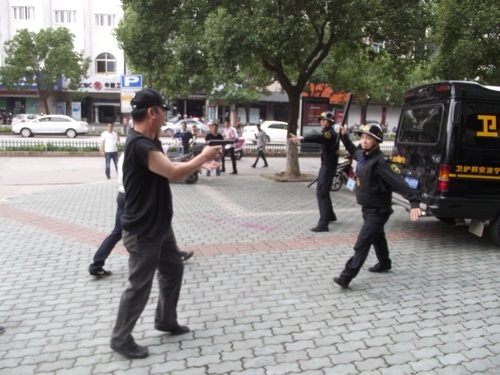 象山縣公安局舉行了反恐怖應急實戰(zhàn)演練,寧波安邦護衛(wèi)有限公司象山大隊參與了配合。演練內容為:當運鈔車到達民生銀行網點正卸款箱時,突遇兩名持槍械恐怖分子沖向運鈔車,擊斃兩名押運員后,用煙霧彈實施爆炸,正要奪款箱而逃時銀行兩名保安員沖出網點與恐怖分子搏斗。公安機關接警后,110指揮中心立即下達指令,迅速調集武警、巡警、交警、刑警、消防等百余名警力和120急救中心緊急趕赴現(xiàn)場,進行消防滅火和醫(yī)療急救,公安機關進行現(xiàn)場勘查,并堵截交通要道,最終擒獲恐怖分子,追回款箱。縣政府、縣公安局有關領導到場觀摩了演習。