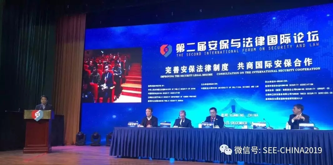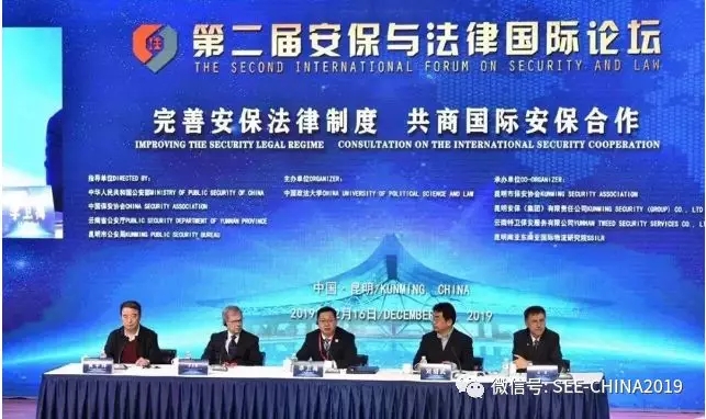 第二屆安保與法律國際論壇在公安部、中國保安協會、云南省公安廳、昆明市公安局的共同指導下,由中國政法大學主辦,昆明市保安協會、昆明安保(集團)有限責任公司、云南特衛保安服務有限公司、昆明南亞東南亞國際物流研究院聯合承辦于2019年 12 月 15 日至 17 日在昆明隆重舉行。