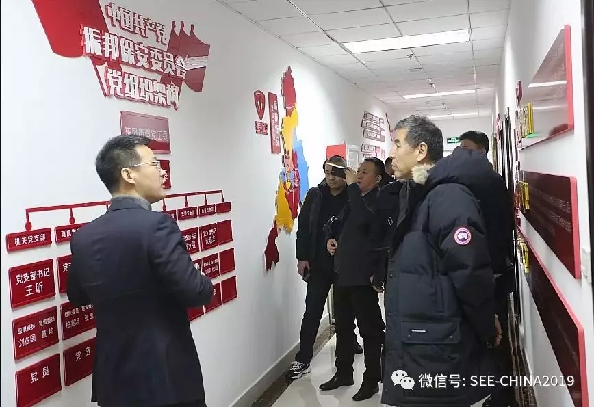 在振邦大廈,京豫公安機關領導及行業同仁首先參觀振邦保安文化長廊、榮譽室及黨建陣地,了解山東振邦保安服務有限責任公司的發展歷程、業務情況以及“紅盾”黨建品牌的建設情況。