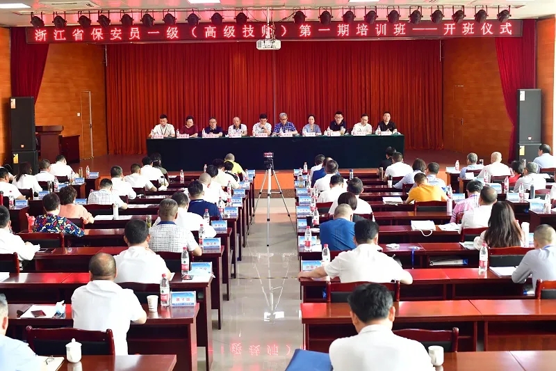 5月18日,浙江省保安員一級(jí)(高級(jí)技師)第一期培訓(xùn)班在杭州市保安職業(yè)專修學(xué)校正式開(kāi)班。浙江省保安協(xié)會(huì)會(huì)長(zhǎng)何建軍,浙江省職業(yè)技能鑒定指導(dǎo)中心副主黃國(guó)汀,浙江省保安協(xié)會(huì)副會(huì)長(zhǎng)王暉,杭州市職業(yè)技能鑒定指導(dǎo)中心主持工作副主任余頌群,浙江省公安廳治安監(jiān)督管理總隊(duì)科長(zhǎng)、浙江省保安協(xié)會(huì)秘書(shū)長(zhǎng)王文驊,杭州市公安局基層基礎(chǔ)管理支隊(duì)大隊(duì)長(zhǎng)徐浩亮,浙江省保安協(xié)會(huì)副秘書(shū)長(zhǎng)夏國(guó)鋒,浙江省保安協(xié)會(huì)副秘書(shū)長(zhǎng)王曉蕾,杭州市保安職業(yè)專修學(xué)校董事長(zhǎng)趙仁杰出席開(kāi)班儀式。杭州市職業(yè)技能鑒定指導(dǎo)中心、杭州市公安局及臨安區(qū)公安局相關(guān)領(lǐng)導(dǎo)參加了開(kāi)班儀式,72名來(lái)自浙江省保安行業(yè)的企業(yè)家和業(yè)界精英參加培訓(xùn)。