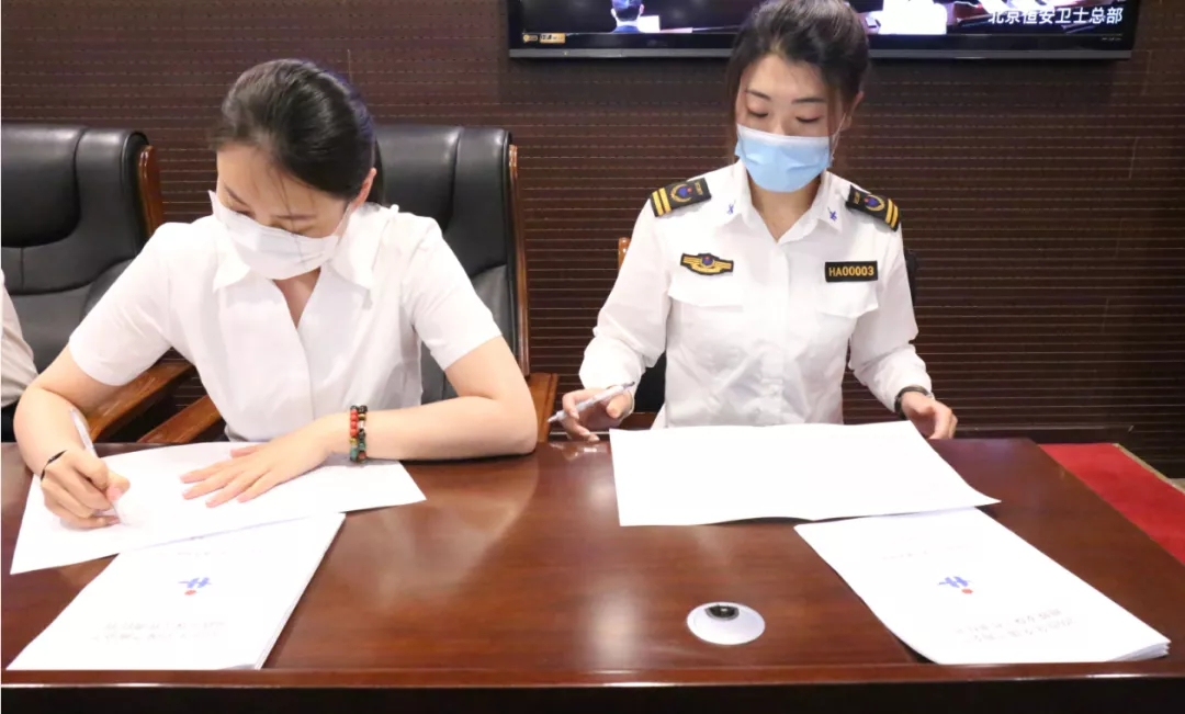 2020年全國“兩會”召開在即,此階段“常態化”疫情防控和“戰時”安保反恐防范工作任務疊加。為確保“兩會”期間安檢工作平穩、健康、有序的進行,各項目部要按照上級部門指示精神及公司工作要求,提前謀劃、提早部署、嚴密措施、狠抓落實,壓實責任,確保各項工作的有序開展,全力保障各項工作有效落實,根據安檢工作責任制相關要求,北京恒安衛士保安服務有限公司特與所屬項目部簽訂《“兩會”安保工作責任書》,堅決做到:一、“外防輸入、內防反彈”,疫情防控“零感染、零擴散”;二、嚴格落實“一攔截不戴口罩乘客二測溫三檢人”的疫情防控工作要求;三、項目部內部不發生刑事案件;四、不發生刑事犯罪;五、不發生行政拘留以上的處罰;六不發生群體性事件;七、不發生任何責任漏檢事件;八、不發生違章違紀事件;九、不發生責任投訴事件;十、嚴格按照“因城施策”落實各地的安檢工作要求;十一、確保做到各項工