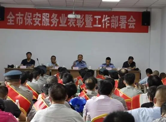 近日,馬鞍山市公安局保安管理支隊、市保安行業協會在金江保安學校召開全市保安管理暨表彰工作會議,表彰獎勵2019年表現優秀的保安公司和保安員并部署下半年保安管理工作。保安管理支隊全體民警、市保安協會負責人、全市保安從業單位負責人及獲獎代表等100余人參加了這次會議。