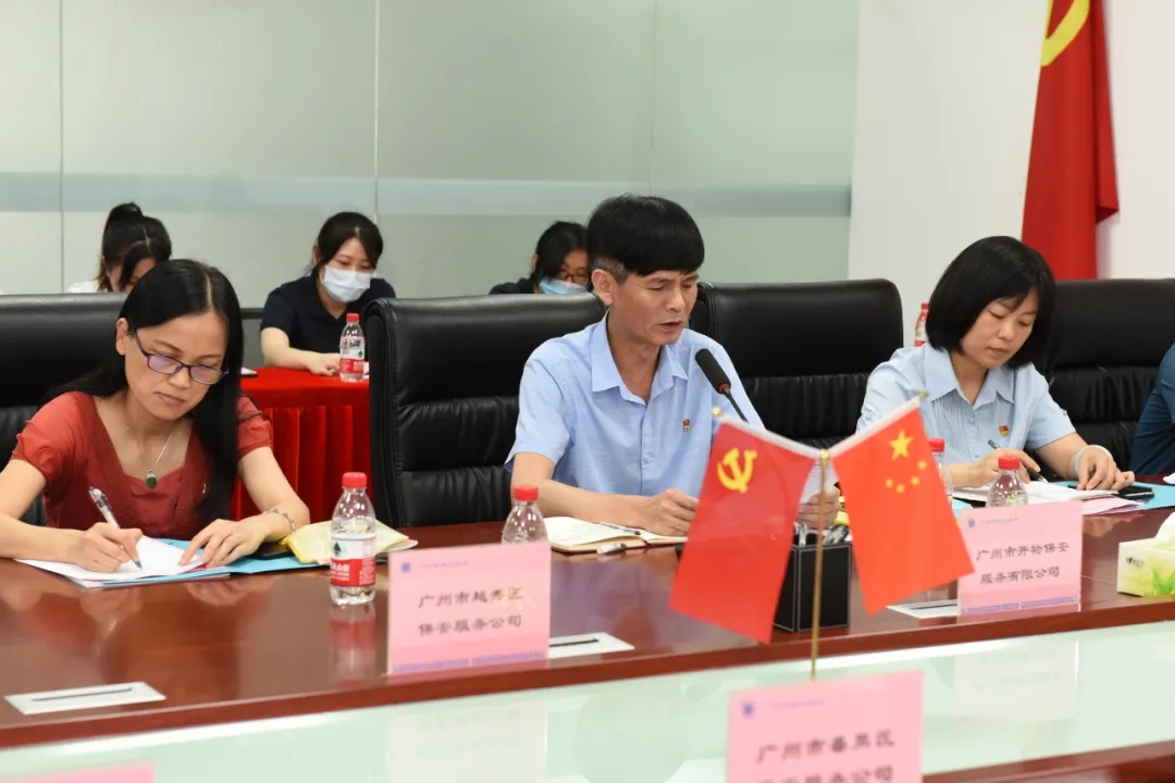 廣州市南沙保安服務有限公司黨支部書記劉文超圍繞該公司脫鉤改制后堅持黨的領導,健全了支部班子,積極推進黨組織建設在國有企業高質量發展中起到的作用等工作情況進行分享。