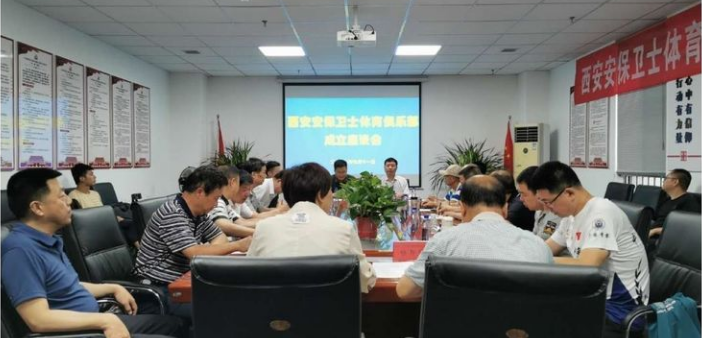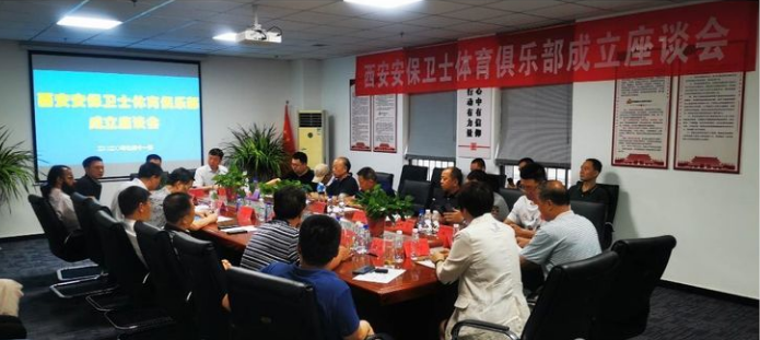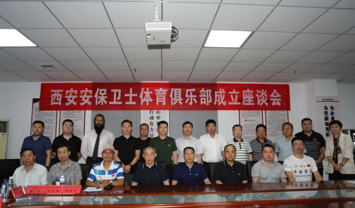 7月11日,西安安保衛士體育俱樂部在陜西秦之盾保安服務有限公司會議室召開了成立座談會,正式宣告了全國首家保安員體育俱樂部在西安成立。成立座談會由西安市保安協會副會長、西安安保衛士體育俱樂部法定代表人趙新彪主持。西安市保安協會會長孟宗林、副會長兼監事長朱小波、副會長兼秘書長程保衛、副會長竇智興、張金龍、李明輝、黃在元、李林安,副秘書長楊存科、王華和西安市體育總會辦公室黨總支書記、主任范瑞明、西安市公安局反恐支隊支隊長楊軍、中國警察馬拉松俱樂部西安跑團團長章凡、原中央警衛團總教練程相賢、北京紅森安全技術有限公司(紅森安全學院)董事長、院長程傳森、中國社會科學院高級顧問、荷蘭安防專家羅賓、陜西省武術協會副主席馬文國、江泰保險經紀股份有限公司西安分公司市場總監潘龍及有關媒體朋友20余人應邀出席了座談會。