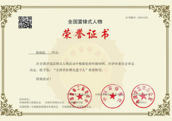 江蘇天名保安服務有限公司董事長陳鏡民榮獲“全國學雷鋒先進個人”榮譽稱號