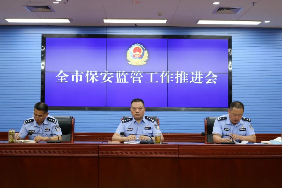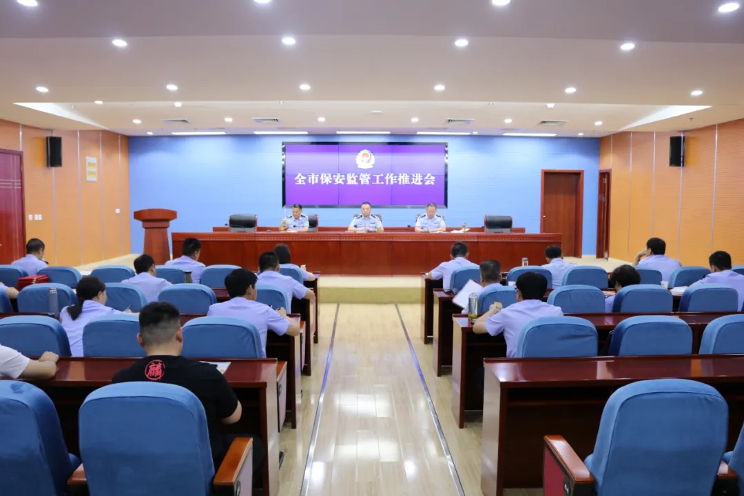 為推進全市保安監(jiān)管工作的開展,進一步提高保安監(jiān)管民警加強日常監(jiān)管和便民利企的能力、水平,7月10日上午,阜陽市公安局保安管理支隊召開全市保安監(jiān)管工作推進會,各分縣市局保安監(jiān)管部門負責人、內(nèi)勤,高鐵機場分局、阜合產(chǎn)業(yè)園分局民警代表,保安支隊全體人員參加會議。