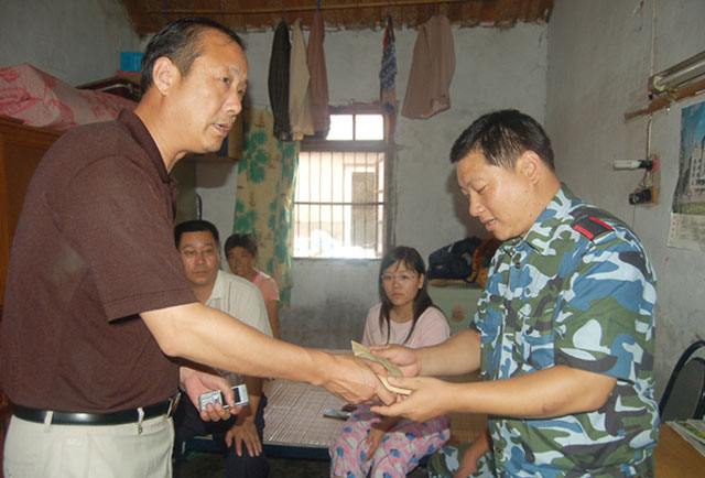 8月5日上午,總公司工會侯秀濱主席赴洪澤將5900元愛心款送到押運隊員蔣士軍手中,鼓勵他和家屬要戰勝病魔、戰勝困難。蔣士軍是保安公司一名武裝押運員,他家屬不幸患上了尿毒癥,每月高達4000多元的血透費用,對于家庭一直比較貧困的他來說,無疑是雪上加霜。保安公司了解到他的實際困難后,立即在押運隊伍中組織對他進行愛心捐款,受到了押運員的積極響應。
