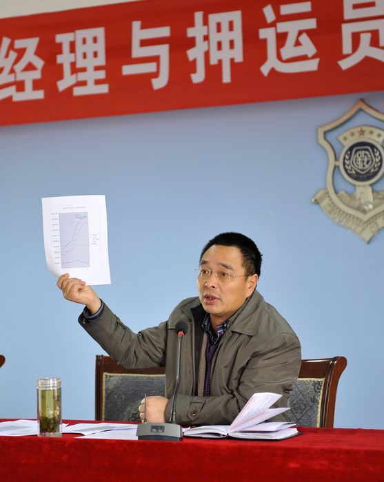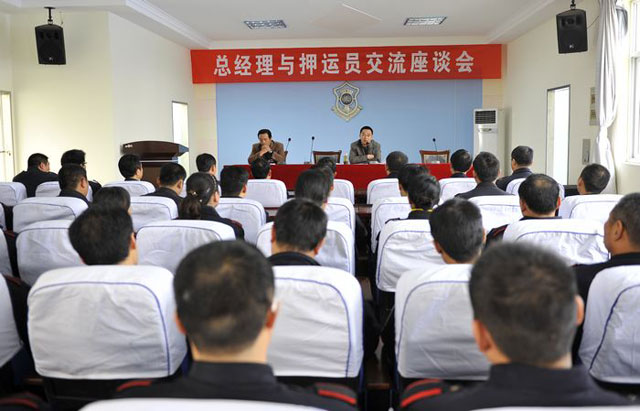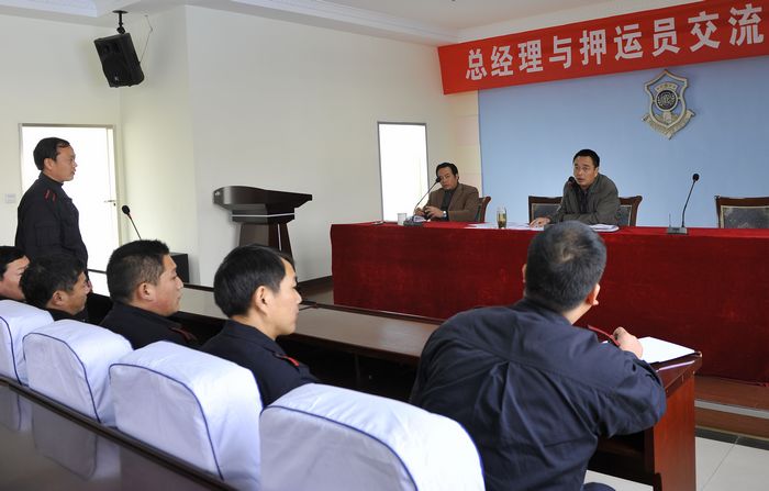 為了進(jìn)一步加強(qiáng)守護(hù)押運(yùn)隊(duì)伍管理,適時(shí)掌握一線隊(duì)員的思想動(dòng)態(tài),2010年11月27日上午, 公司在押運(yùn)中心三樓召開(kāi)了“總經(jīng)理與押運(yùn)員面對(duì)面交流座談會(huì)”。押運(yùn)中心市區(qū)全體守押人員、縣區(qū)押運(yùn)員代表和公司各部門(mén)負(fù)責(zé)人及機(jī)關(guān)部分員工160余人參加了會(huì)議。