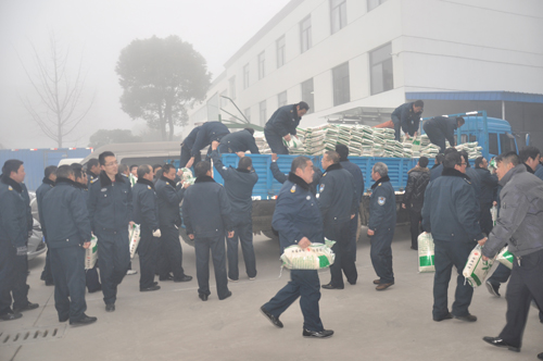 為了讓公司員工度過一個快樂、祥和的新春佳節(jié),總公司工會為全體保安員發(fā)放了油、米等豐富的年貨。這一份份沉甸甸的春節(jié)禮物讓每位保安員的心里真真切切的感受到了公司對他們的關(guān)懷。