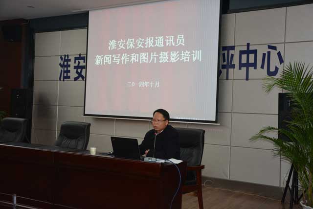 陳總監(jiān)根據(jù)保安企業(yè)新聞宣傳特點,結(jié)合《淮安保安》報來稿情況講解了消息和新聞通訊的寫作知識,并要求全體通訊員走進(jìn)淮安保安基層一線,了解基層,深入挖掘有新聞價值的亮點,寫出有淮安保安特色的新聞稿件。陳總監(jiān)在圖片攝影培訓(xùn)中,利用“定格瞬間”為主題,講述了拍照與攝影的區(qū)別,并講解了攝影用光、拍攝角度和攝影構(gòu)圖等基礎(chǔ)知識,還分析交流了自己平時創(chuàng)作的攝影圖片,在寓教于樂的寬松氛圍中讓通訊員們學(xué)到一定的專業(yè)知識和攝影常識。