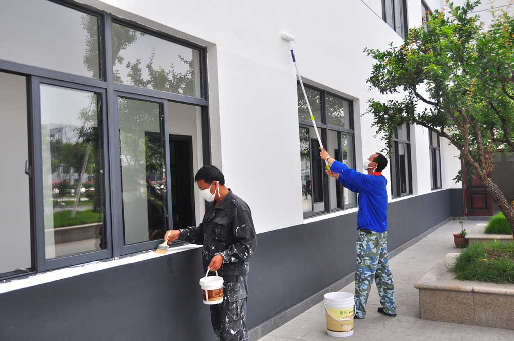 接到任務后,趙炳華、丁云清2名同志首先對所有施工現場進行了察看和預算,并制定了施工方案。基于押運樓是在老平房的基礎上翻新加層建筑,使得部分房間墻面脫落并出現裂縫,樓體墻面防水層破損,每逢下雨天便有雨水不同程度的滲漏,影響了辦公和生活秩序,加上公司院內籃球架、單雙杠器材、木椅、木橋、樓前防護木等褪色和部分損壞的情況,以及剛建好的綜合活動中心二樓1100多平方米木質地板需要進行漆化處理。面對如此工程,趙炳華、丁云清2名同志迅速作出合理安排和應對措施,開始著手對樓體做好防水處理,同時將1至5層樓的隊員宿舍、辦公室、更衣室等所有房間1000多平方米的墻面進行打磨粉刷,并對公司剛建好的活動中心二樓1100多平方地面進行多次漆化處理,以及房屋里外設施進行了修繕。