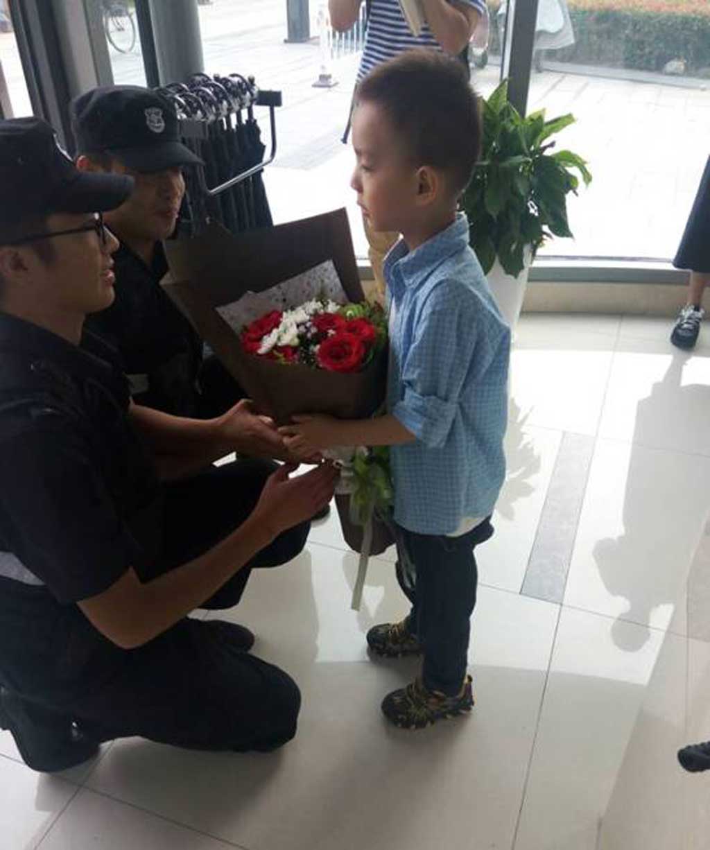 2016年10月5日下午在萬達廣場警務工作服務站內,在淮安日報社、淮安電視臺等記者的“咔咔”攝像聲中,談亦童小朋友手捧鮮花來到隊員胡繼田與孫慧棟兩名隊員面前,連聲說“謝謝叔叔!謝謝叔叔!”原來是10月4號晚8時左右,隊員胡繼田與孫慧棟一組正常巡邏到A區域時,發現車庫處,一女同志懷抱一小孩,吃力地往前跑,邊跑邊哭。這時巡邏隊員發現,立即沖上前,問明情況后,抱過小孩直奔附近中山醫院,沒有找值班醫生,后立馬往八二醫院跑。聞訊趕來的巡邏車,帶上他們一同趕往八二醫院。在路途中孩子的媽媽童女士,急的失聲痛哭。原來童女士帶著孩子逛商城時,孩子吃了牛皮糖不小心堵住氣管,孩子一度臉色蒼白,痛苦的呻吟。在往醫院奔趕得途中,由于顛簸,將牛皮糖顛下去了。到八二醫院,醫生檢查后確認化險為夷。醫生說如果不是保安及時處置,孩子很可能就窒息了,十分危險。于是出現開頭的一幕。萬達警務工作服務站是淮安市公安局剛剛組建的新的惠民服務,總公司派駐的50名輔警人員。自9月24日組建以來,傳承了淮安保安隊伍優良品德,嚴謹的工作作風,過硬的素質,得到清河公安分局領導的高度贊揚,得到社會廣泛認可!引起淮安電視臺以及淮安日報等媒體的關注和贊美!