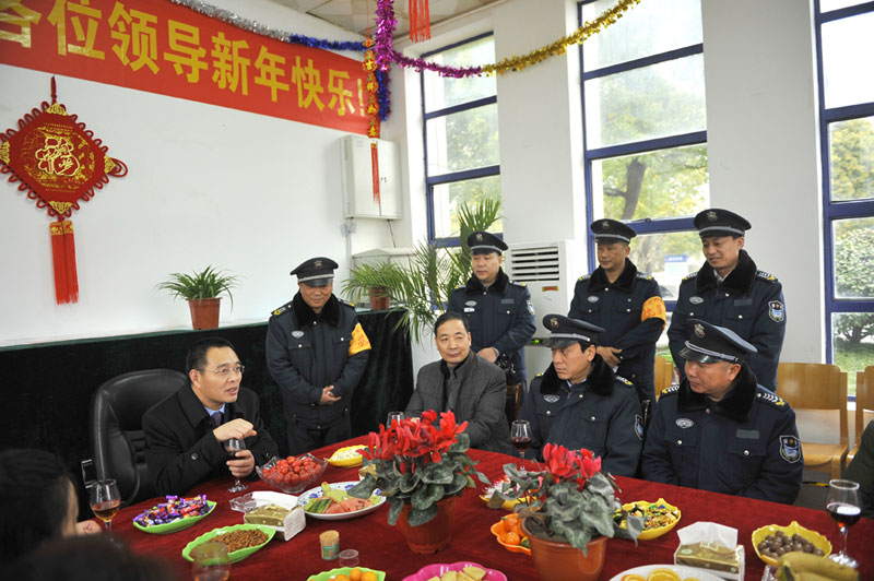 當天上午,在人防管理中心總監(jiān)王錦春陪同下,婁伯翱總經(jīng)理慰問了駐市審批中心、淮陰卷煙廠、市財經(jīng)學院、市護理學院等人防執(zhí)勤點以及銀盾駕校等部門堅守崗位的保安員工。在每個執(zhí)勤點,婁伯翱總經(jīng)理都與堅守崗位的保安員親切握手,并詳細詢問隊員的工作和生活情況,向堅守崗位的隊員致以新春的問候,祝福大家新春快樂、全家幸福!并勉勵大家在新的一年里勤奮工作,敬業(yè)奉獻,為淮安保安工作再上新臺階作出更大的貢獻!