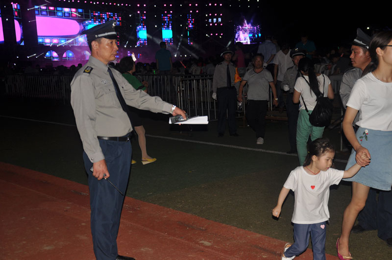 6月初,人防中心王錦春總監牽頭部門的大型活動安保小組積極與主辦方溝通聯絡,多次到金湖與當地公安機關、主辦方溝通協調安保方案,實地踏勘現場,參與多方協調會,查找安保工作中困難出現的隱患,精心組織安檢、外圍停車場守護、預檢票口、檢票口、內場方陣秩序維持,演員駐地值守等各崗位部署。確保演唱會順利有效安全進行。