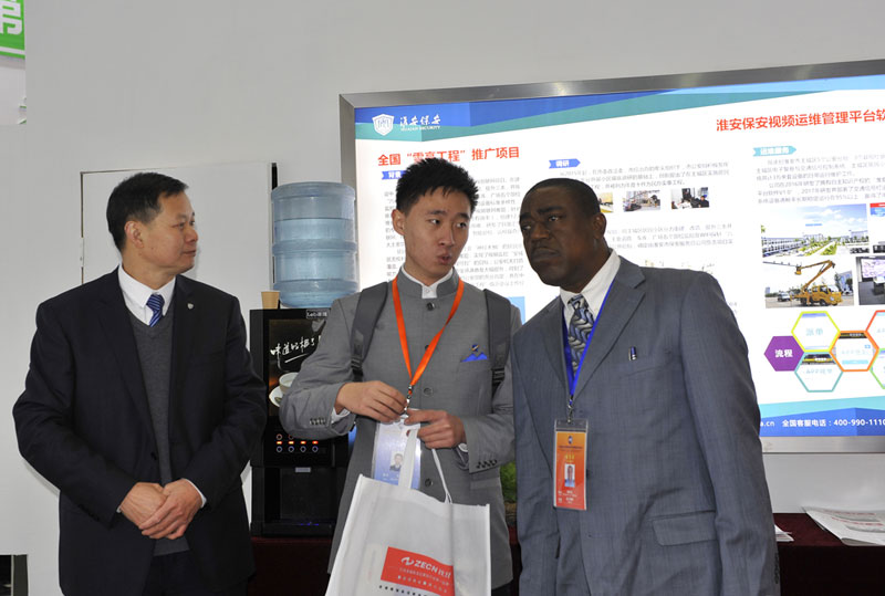 此次參展,淮安保安不僅展示了承建的全國“雪亮工程”推廣項目和自主研發的布防衛士安防產品,同時將公司開展的海外保安服務、G20國際峰會和互聯網大會安保、保安中專學歷教育、聯網報警、無人機服務等特色業務進行了全方位的展示,吸引很多中外嘉賓駐足參觀。