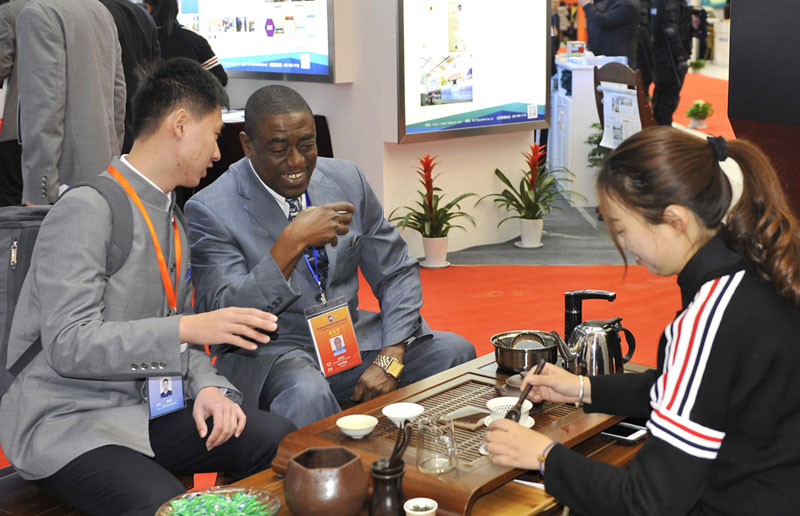 婁伯翱總經理在公司展臺向國外嘉賓介紹海外服務情況