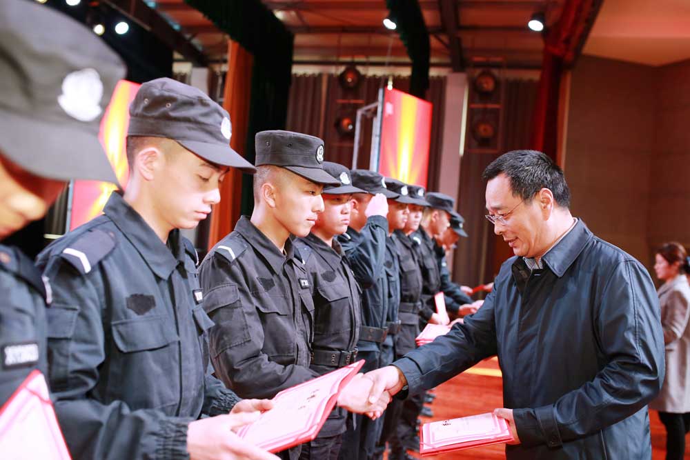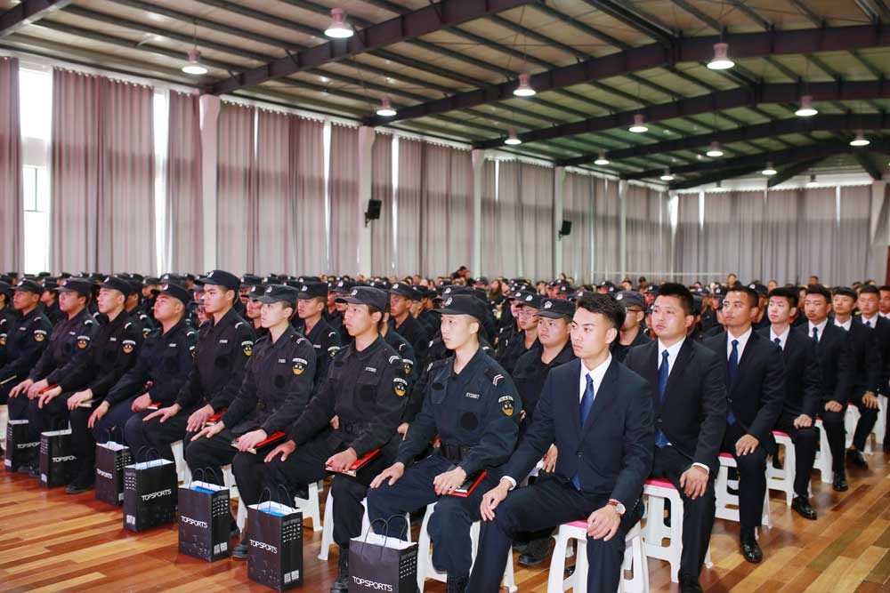 4月4日下午,總公司在活動中心召開了2018年保安班學習實習交流會。總公司總經理婁伯翱、副總經理王克、押運中心總監侯秀濱、人防中心總監王錦春、人力資源中心總監陳峻峰等相關部門負責人和保安班的170名學生以及家長參加了會議。