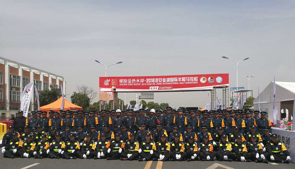 受主辦方邀請,江蘇省淮安市保安服務總公司承擔了本次賽事的綜合安保任務。派出人防保安員700余名,對整場賽事賽道的沿途警衛、人員疏導、秩序維護。另外還承擔賽事安保指揮部的搭建、運行保障、賽事視頻圖像等實時傳輸等技術保障工作。在總公司統一精心組織下,圓滿完成了此次賽事安保任務。為參加半程馬拉松運動比賽的所有運動員、裁判員、沿途助威的群眾提供了良好的賽事環境。