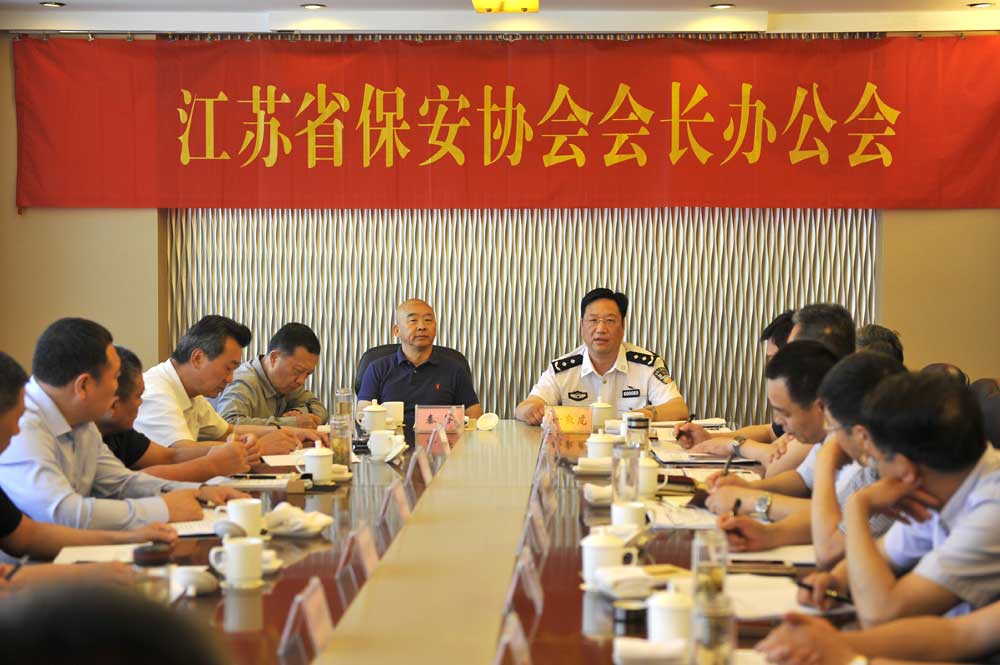 2018年5月15日上午,江蘇省保安協會會長辦公會在南京召開,省公安廳治安總隊、省保安協會有關領導和各副會長單位負責人參加了會議。總公司婁伯翱總經理參會并報告了安全技術防范專業委員會籌備工作情況。