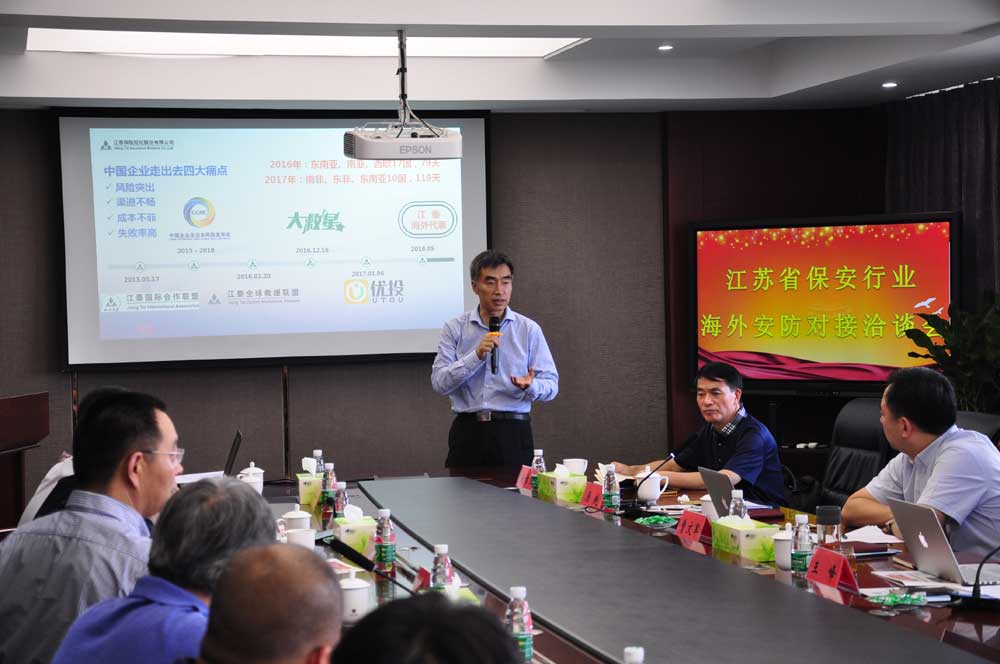 會上,江泰保險經紀股份有限公司重點發布了海外投資安全風險;江蘇省海外企業集團介紹了海外投資項目有關情況,提出了具體安防需求;淮安市保安服務總公司等企業分別介紹了“走出去”的探索做法和下階段的發展方向。