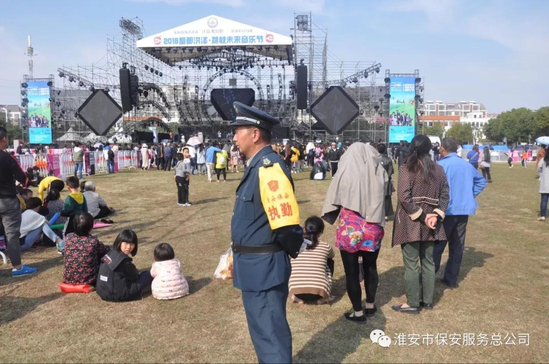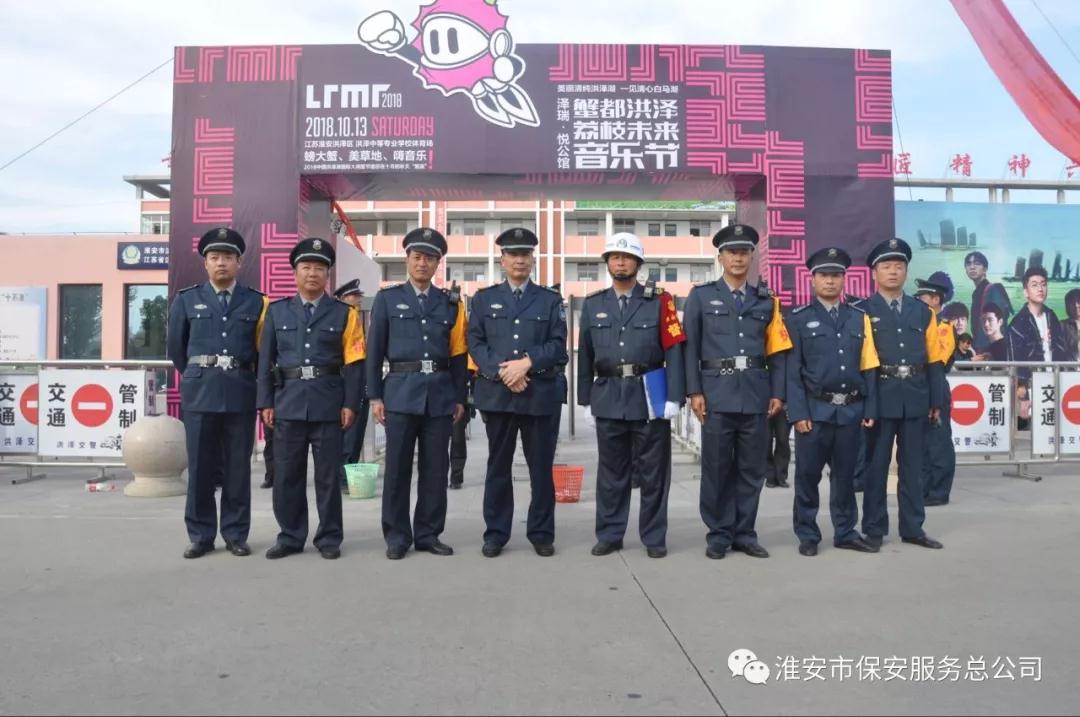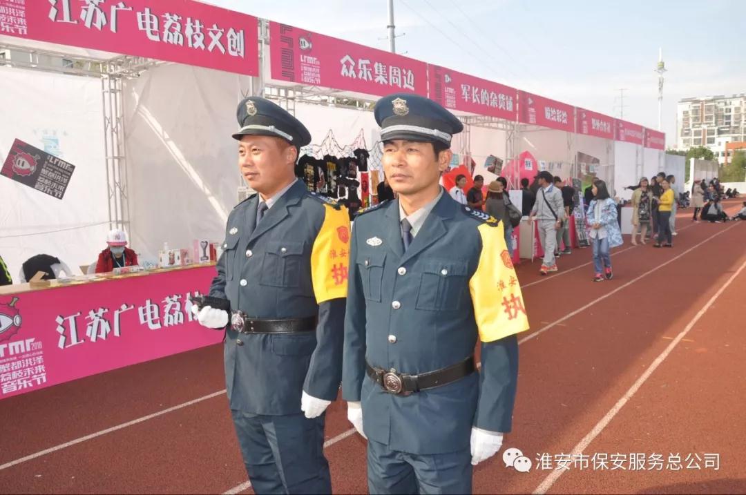 總公司派出130余名保安力量,承擔音樂節的預檢票口、檢票口檢票、安檢、貴賓入口以及內場和舞臺區域的管控和秩序維護等工作。此次音樂節從中午13:30開始直至21:40,執勤時間長、人員環境復雜、工作任務艱巨。總公司人防管理中心130余名保安員于中午12時準時進入預定崗位,直至音樂節結束,長達8個小時期間,淮安保安人堅守崗位、認真履職。黃紅相間“淮安保安”靚麗的臂章在各個崗位上,成為音樂節的一道亮麗風景。淮安保安的嚴謹作風,嫻熟的業務能力,文明的服務態度,得到主辦單位的肯定。
