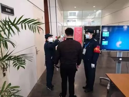 人防中心全體保安員緊繃戰斗神經,值守在各個崗位。在醫院防疫一線,他們冒著比常人高很多的感染風險,甚至和一線醫護人員一樣近距離接觸確診或疑似病例的患者;在市政機關、銀行、學校等公共場所,他們恪盡職守,認真履職,登記進出人員信息并測量體溫,認真排查發熱患者及疫源地人員;在企業單位,他們堅守崗位,針對區域定時、定點消毒、警戒隔離,用自己的行動為民眾撐起了一片清亮藍天。
