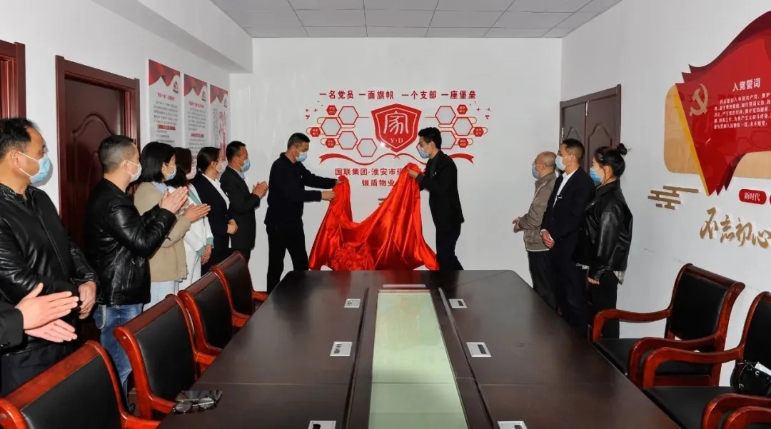 為進一步深化國聯集團“紅色驛站”特色黨建品牌建設,發揮黨建引領作用, 4月28日上午,總公司下屬淮安市銀盾物業服務有限公司“紅色驛站”舉行揭牌儀式。總公司黨總支書記、總經理趙愛忠,副總經理黃欣晨,總經理助理陳峻峰,物業公司經理王樹先共同為“紅色驛站”揭牌。