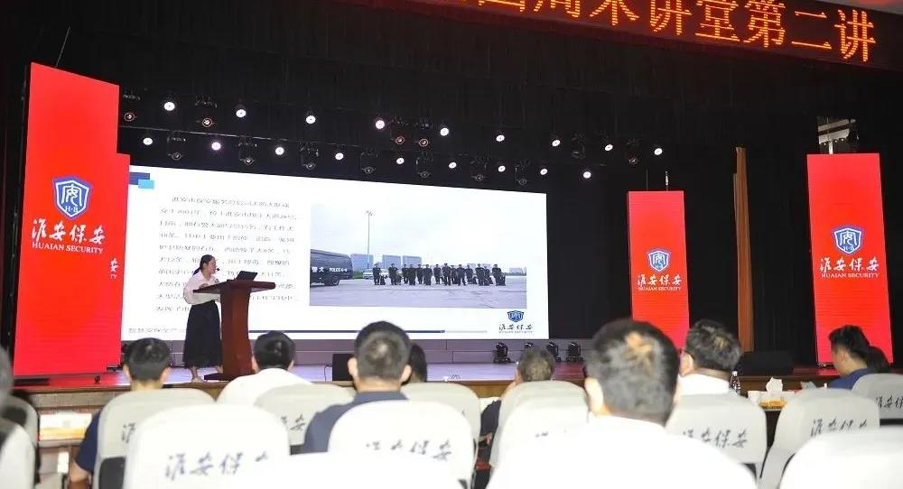 活動中首先播放了保安服務總公司宣傳片。與會者通過宣傳片進一步了解了保安總公司企業情況和業務發展規模。隨后,保安總公司副總經理黃欣晨、技防部副經理葛金棟、犬防大隊警犬訓練員胡偉芳三位兼職講師為大家分享了工作中的經驗和心得。