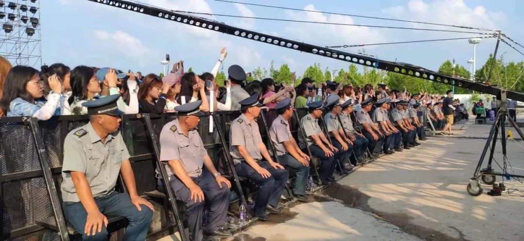 為做好音樂節科技化安保工作,總公司前期在現場搭建了智能化安保指揮部,整合活動現場20余個監控視頻、100余個周邊監控視頻接入安保指揮部大屏,保證了活動現場視頻監控全覆蓋。提前配合公安機關完成活動現場臨時區域管控、區域隔離設施設置。在安檢口增設了安全檢查、人臉識別、人體測溫、數據記錄“四位一體”的可視化安保系統和高科技裝備。